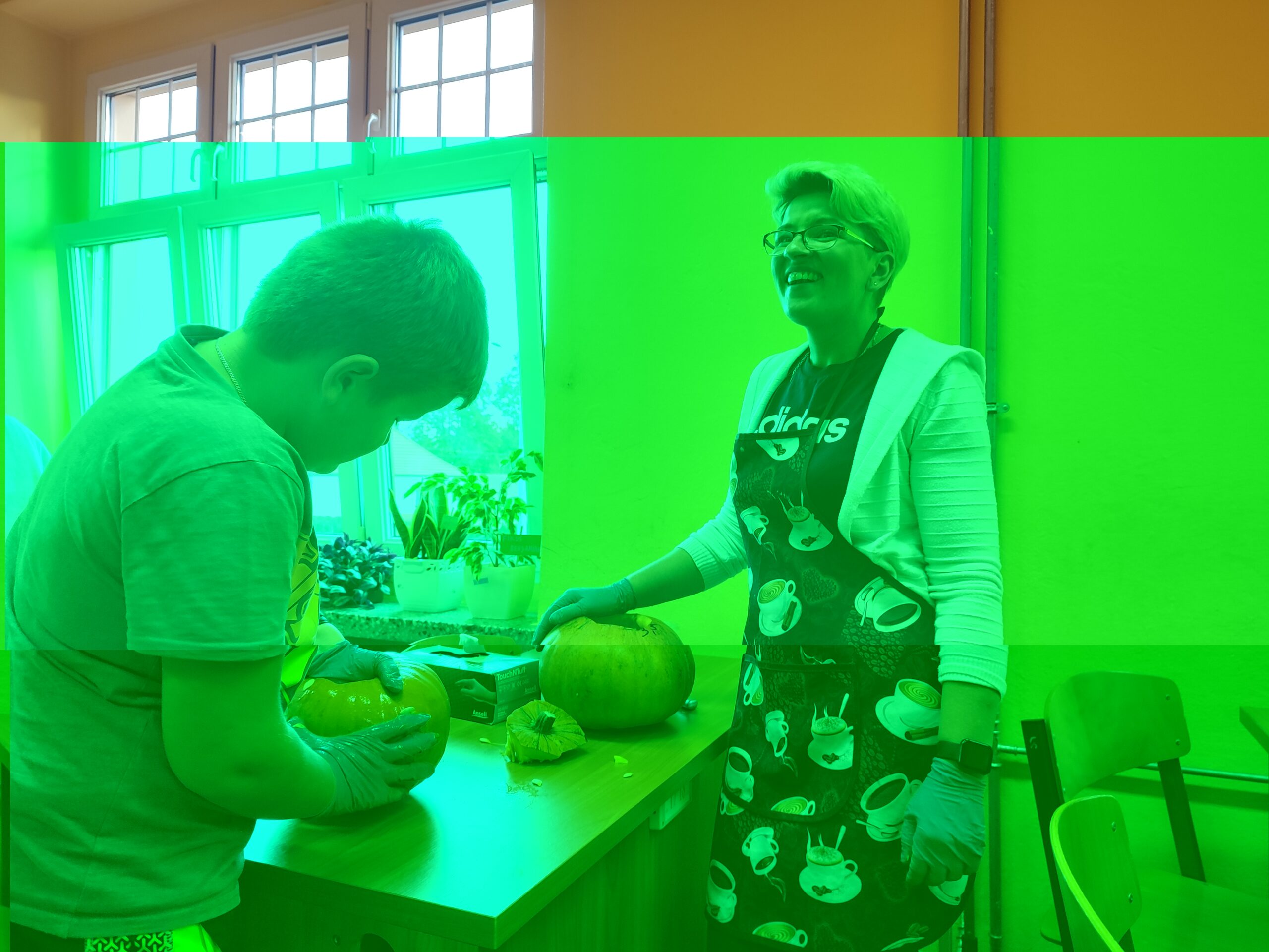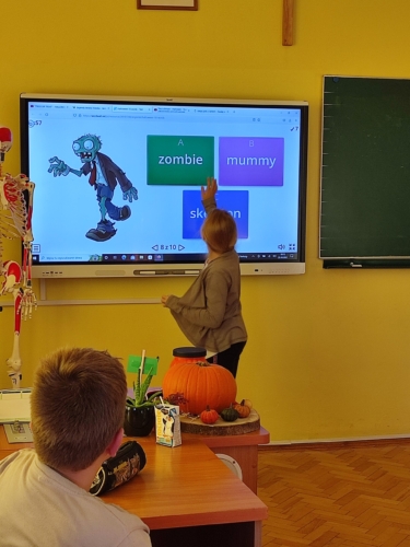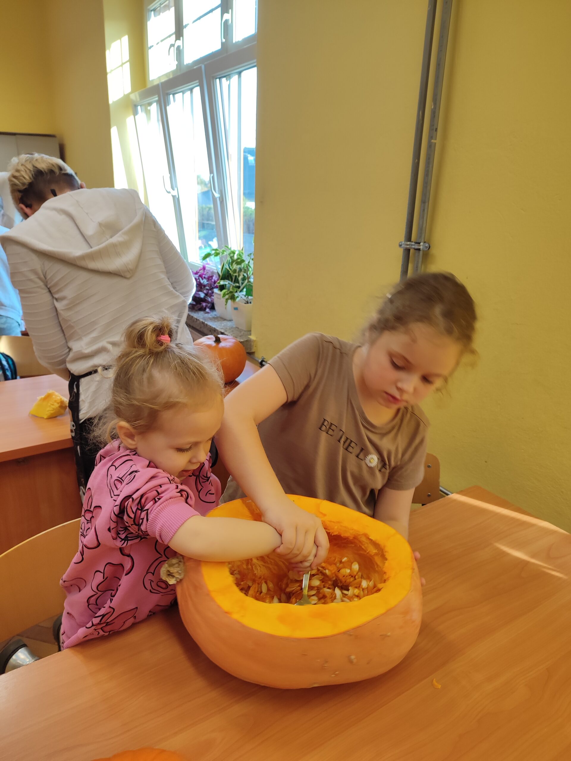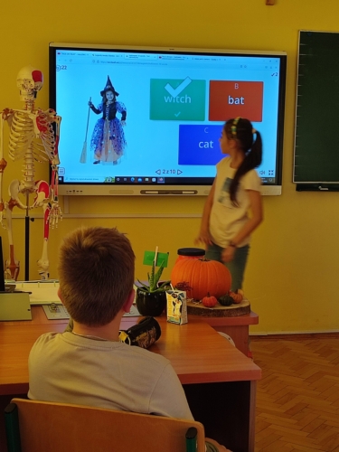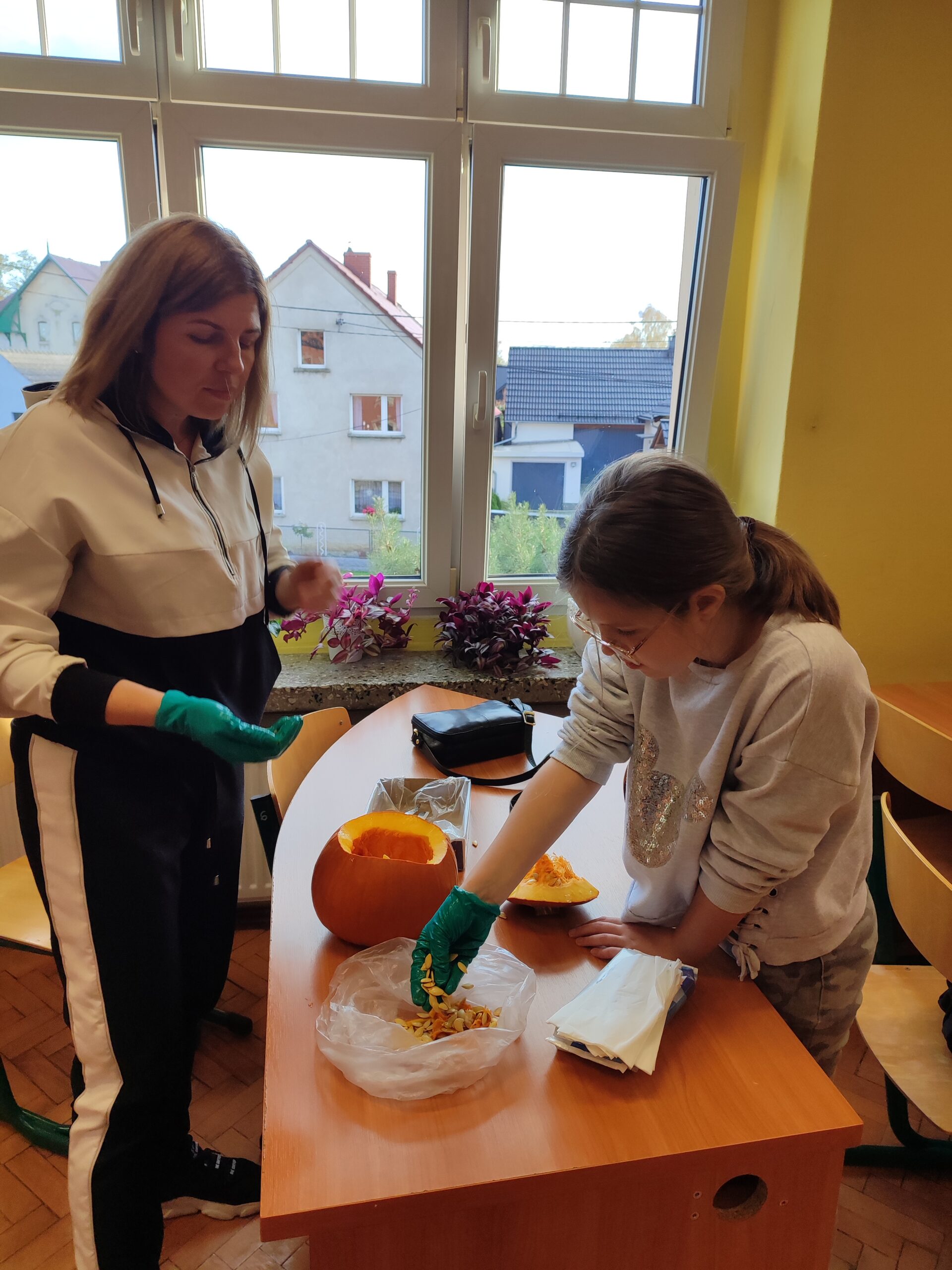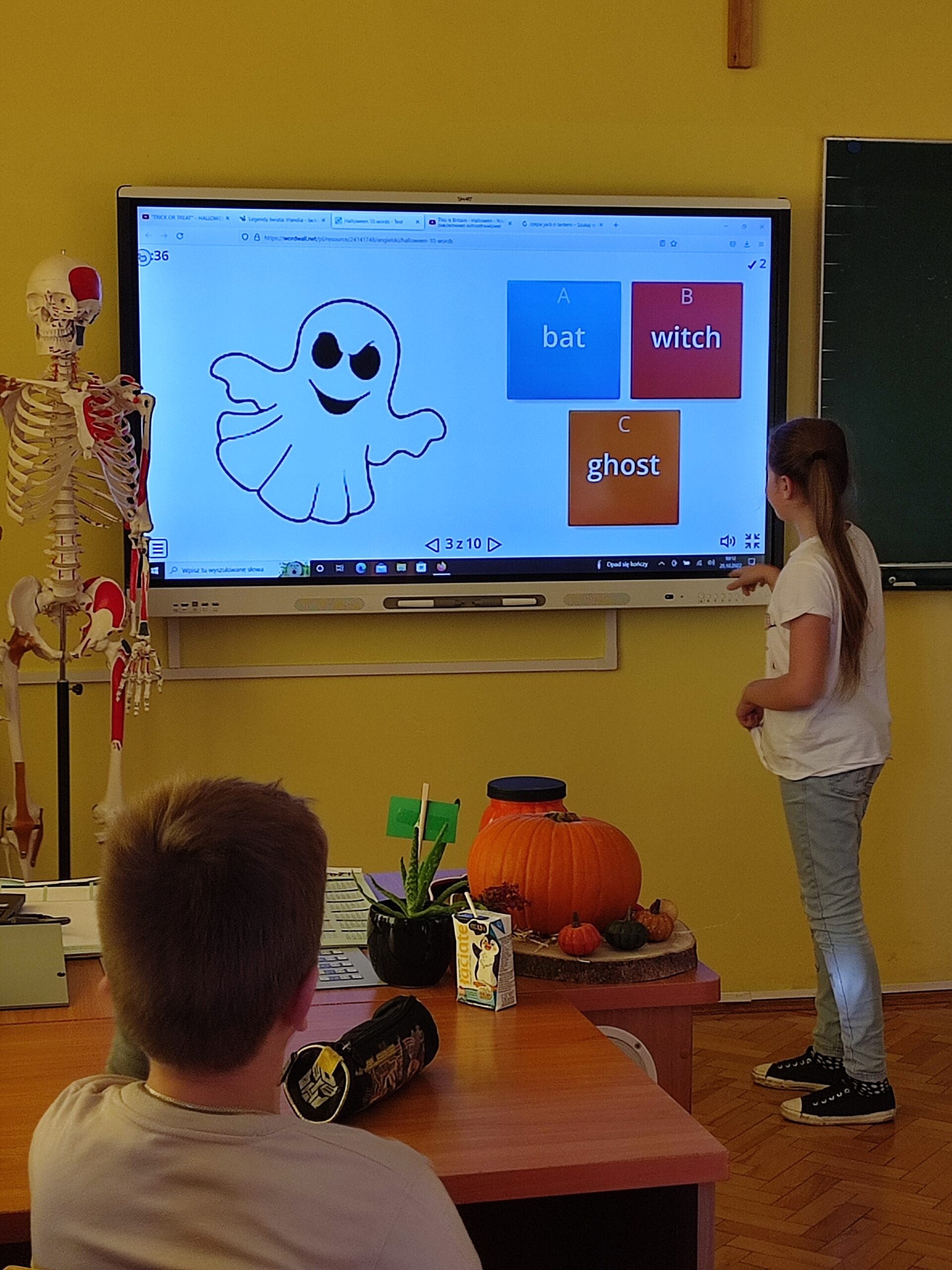 Wykonaliśmy własne Jack -o’- lanterns. Do pracy zaangażowaliśmy naszych rodziców, którzy okazali się nieocenioną pomocą. Czuwali nad posługiwaniem się ostrymi narzędziami, wspierali nasze pomysły, wycinali, drążyli, ale przede wszystkim świetnie się z nami bawili. Mieliśmy możliwość spędzić wspólnie październikowe popołudnie poznając tradycje krajów anglojęzycznych i utożsamiając się z nimi. Jesteśmy bogatsi o kolejne doświadczenie.  Efekty naszych prac eksponujemy na mini- wystawie, do której dołączyliśmy ozdoby wykonane długopisami 3d. Bardzo serdecznie dziękuję rodzicom moich uczniów, którzy poświęcili swój prywatny czas i pomogli w realizacji przedsięwzięcia.