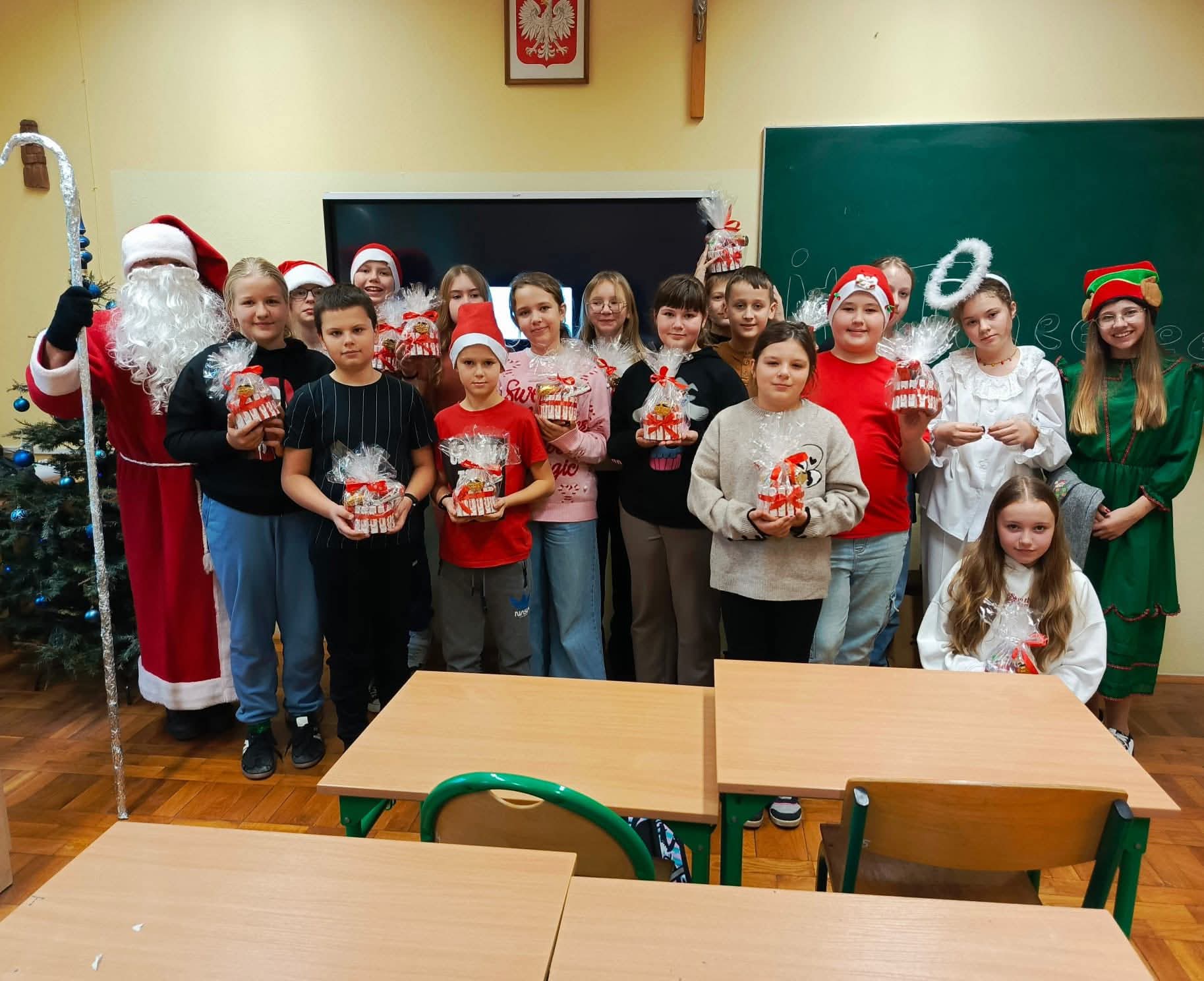 5 grudnia uczniowie naszej szkoły przeżyli wyjątkowy i pełen radości dzień. Już od rana na korytarzach panowała świąteczna atmosfera – dzieci przyszły ubrane w czerwone czapki. Wyczekiwany gość – Święty Mikołaj – pojawił się w towarzystwie swoich pomocników.
