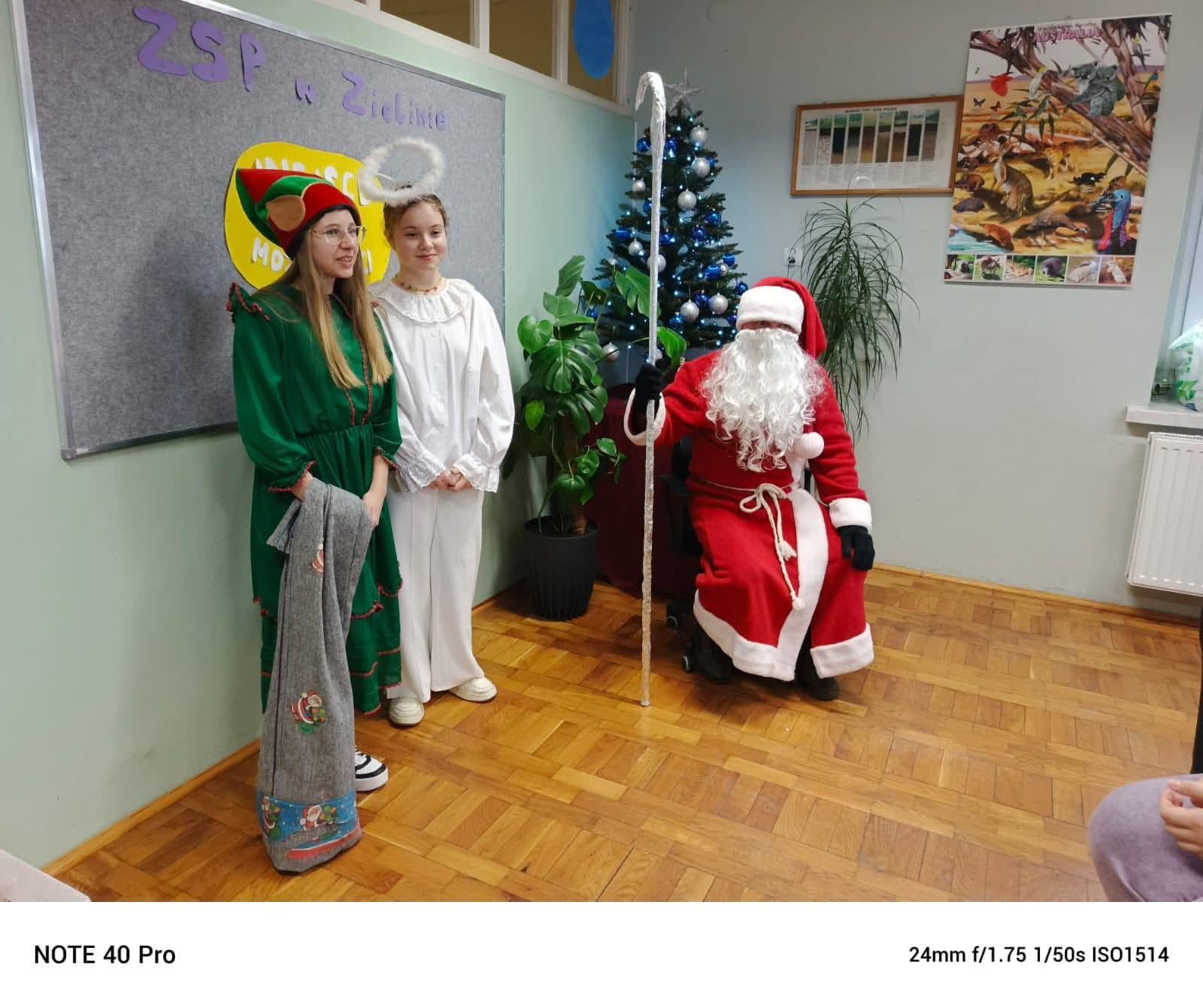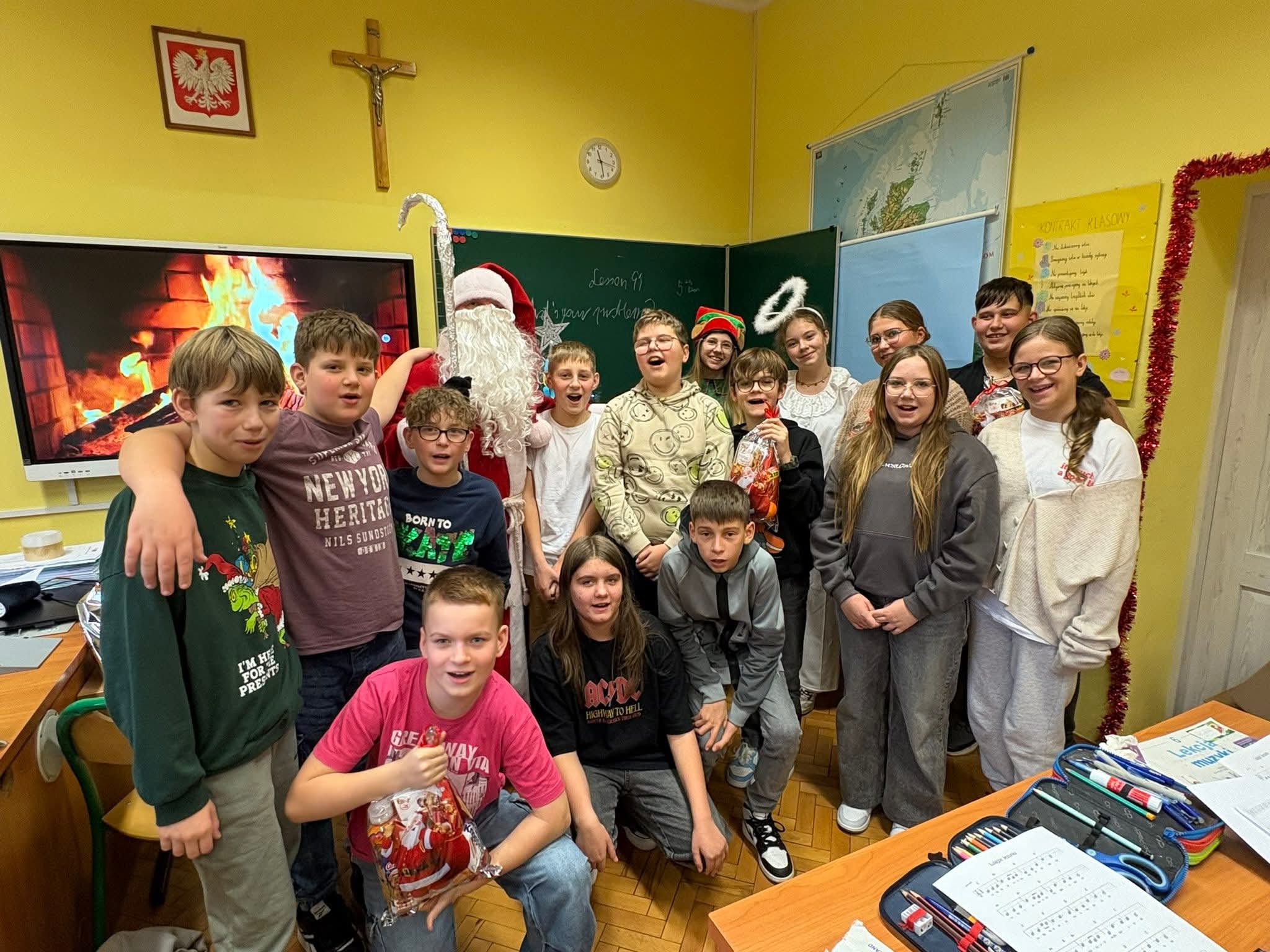 Mikołaj odwiedzał kolejno wszystkie klasy, każde dziecko mogło chwilę porozmawiać z nim i oczywiście odebrać słodki upominek. Spotkanie zakończyło się wspólnymi zdjęciami oraz obietnicą, że Mikołaj wróci za rok. Dzień przyniósł wszystkim wiele uśmiechu i jeszcze bardziej wprowadził nas w świetny nastrój